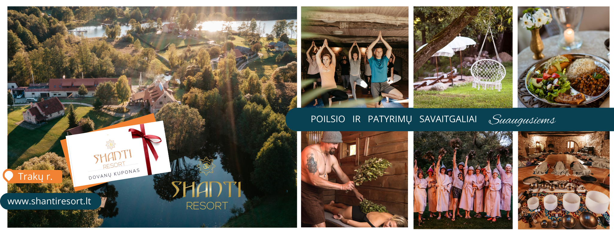 Poilsio ir Patyrimų savaitgaliai suaugusiems vyksta nuolatos mūsų įkurtame "Shanti RESORT"  Trakų raj., kur laukiame dienos ar savaitgalio poilsiui ramybėje! Joga, meditacijos, skanus subalansuotas vegetarinis maitinimas, garso terapija, kvėpavimo ir kitos praktikos - visą dienos ritmą apgalvojome už jus, tiesiog atvykite viena ar dviese ir patirkite, čia...